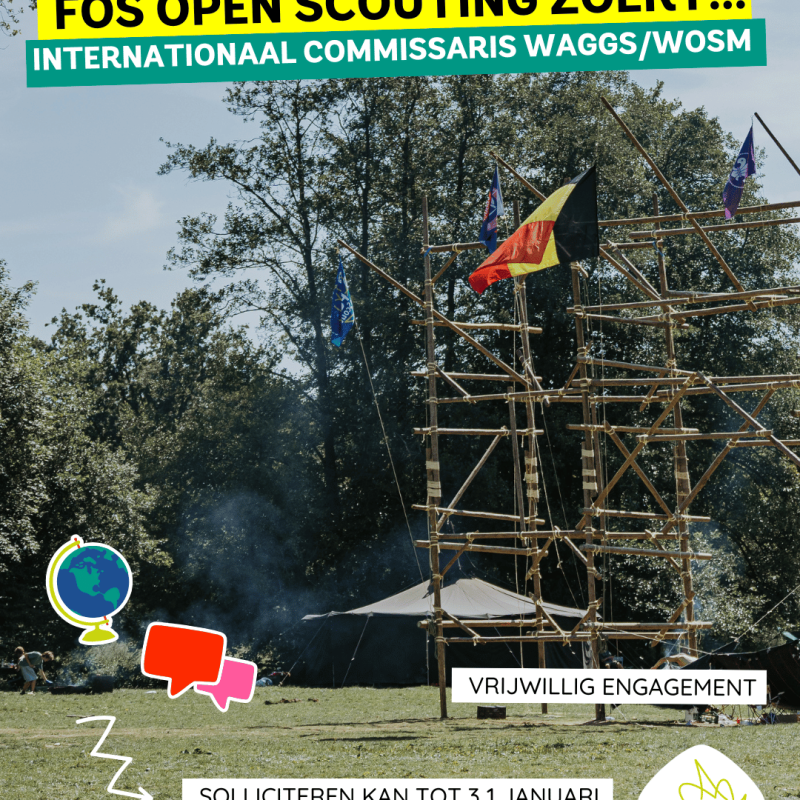 FOS Open Scouting zoekt nieuwe Internationaal Commissarissen voor WAGGGS en WOSM. Je vormt de brug tussen onze beweging, GSB en de wereldbewegingen. Je laat de stem van FOS Open Scouting horen en brengt internationale inzichten tot onze eenheden. Zo maak je als vrijwilliger impact, van lokaal tot wereldwijd.